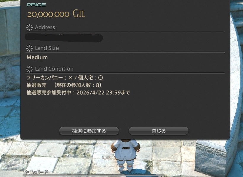 ゲーム内でトレーディングルームを作成しようと住宅(土地購入)を応募しました。