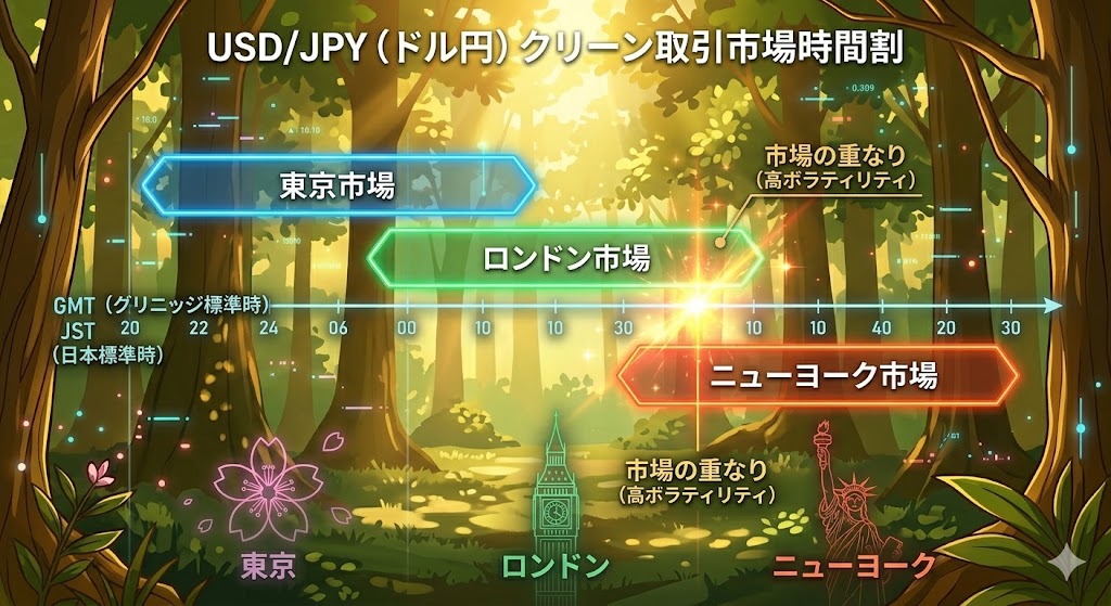 - 市場の覚醒(各市場のオープン・クローズ): 東京、ロンドン、ニューヨークの巨大勢力が参戦、または撤退する時間帯です。特にロンドン初動(15〜16時)やニューヨーク初動(21〜22時)は、相場の流れが急変する分岐点になります。