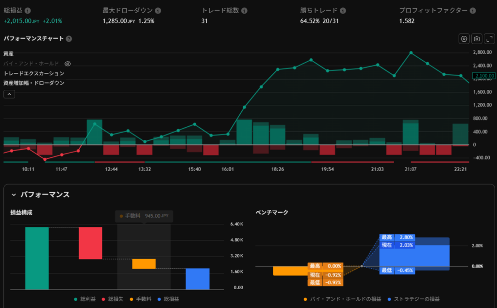 - 総獲得経験値(合計利益): +2,015円 (+20.15 pips)