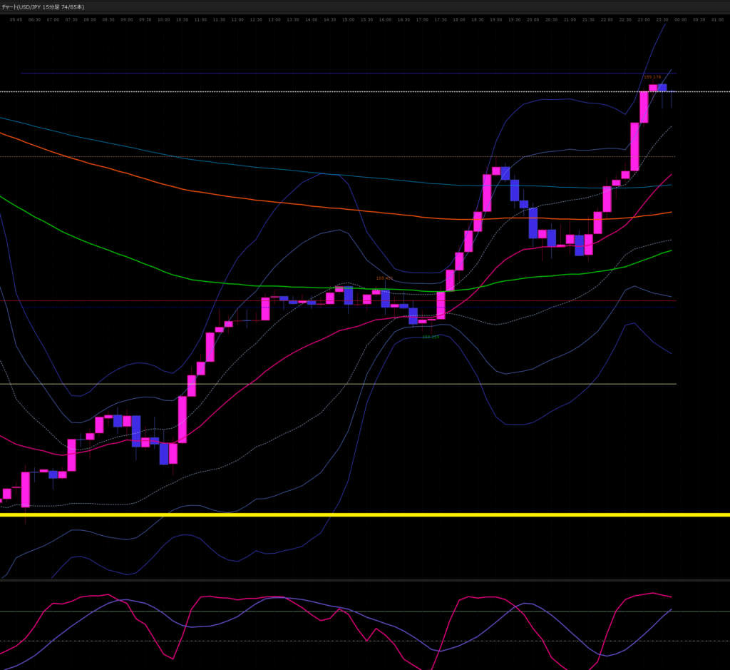 上記は本日の15分足ですが、見事に昨日の下げに乗ったショーターは損切りさせられてるのでないでしょうか?