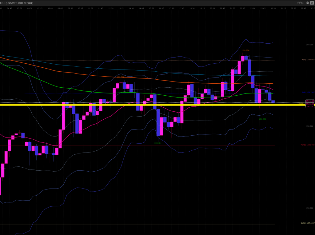 今夜の主戦場は、**158.700の魔法障壁(レジスタンス)**を巡る攻防でした。