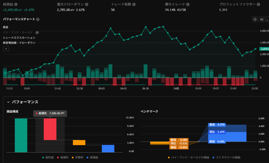 カノンの振るう短剣(エントリー)が見事に調和していました。その共鳴が、この美しい右肩上がりの資産曲線を描き出しました。
