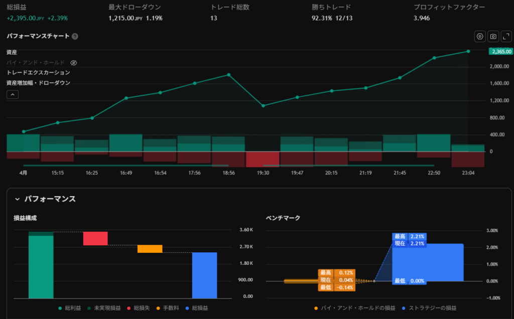 本日の経験値: +23.9 pips(利益:+2,395 JPY)