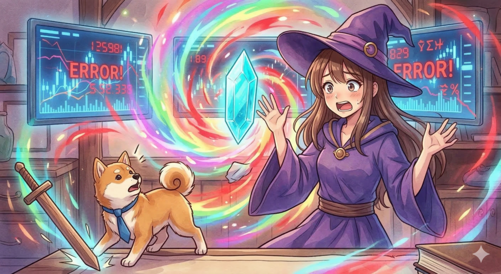 ギャーッ! 剣(エントリー)を振った瞬間に大暴落したワン!なんで僕が買うと下がるの!?